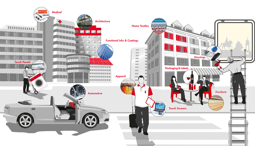 Contrariamente alle applicazioni grafiche, la stampa industriale avviene durante la produzione come una fase nel processo. Questo tipo di stampa rappresenta una sfida unica in termini di varietà e complessità delle forme, substrati e finiture superficiali coinvolti.