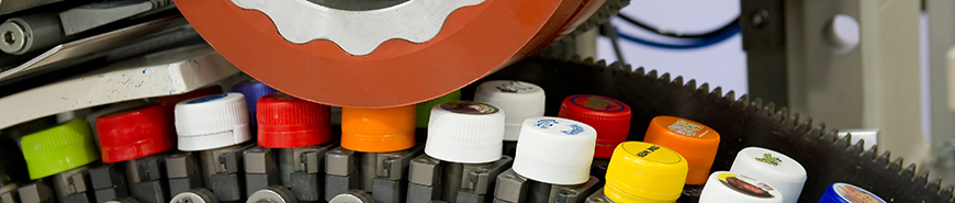 La maggior parte dei tappi per bottiglie sono in polietilene e polipropilene. La velocità di stampa può arrivare fino a molte centinaia di migliaia di tappi per ora.